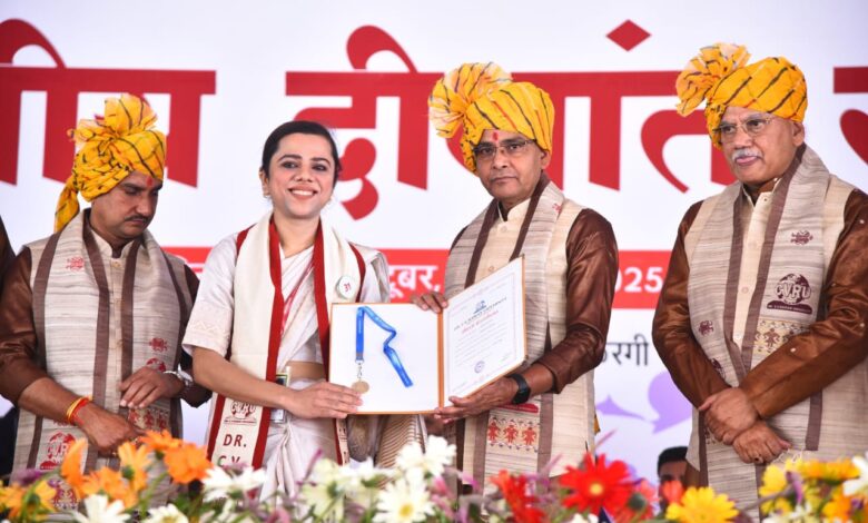 अधिवक्ता कैलाश गुप्ता की बेटी अधिवक्ता कीर्ति गुप्ता राज्यपाल रामेन डेका के हाथों स्वर्ण पदक से हुई सम्मानित