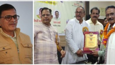 संभागीय सम्मान समारोह में अमर अग्रवाल के हाथों सम्मानित हुए शिव तिवारी, भागीरथी प्रधान, अरुण वर्मा ,गोपाल नायक, केशव पटेल