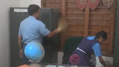 स्वच्छता ही सेवा : 24 के अंतर्गत शिक्षक ने स्वयं सफाई कर दी छात्राओं को प्रेरणा।